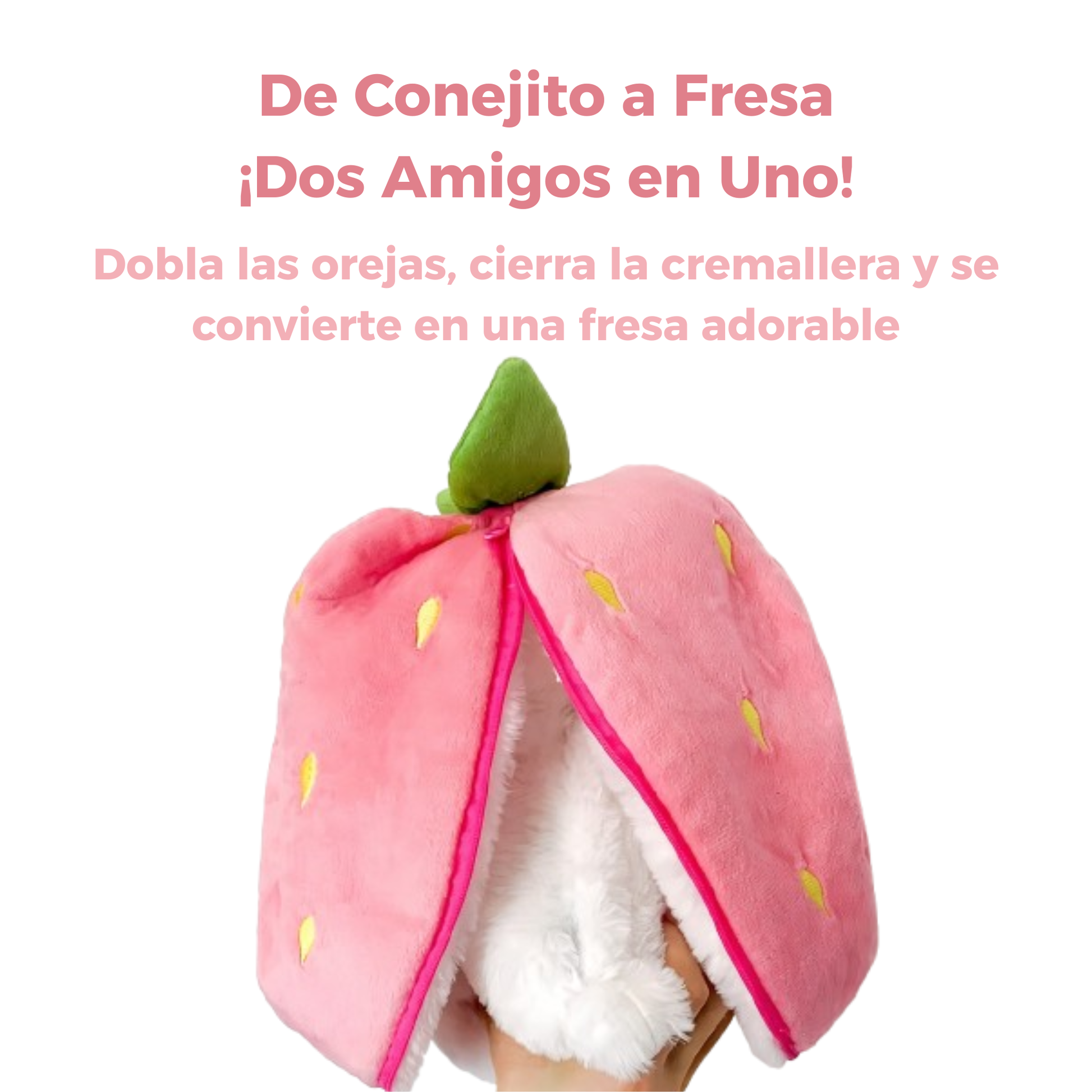 se transforma en una adorable fresa cuando pliegas sus orejas largas y cierras la cremallera.